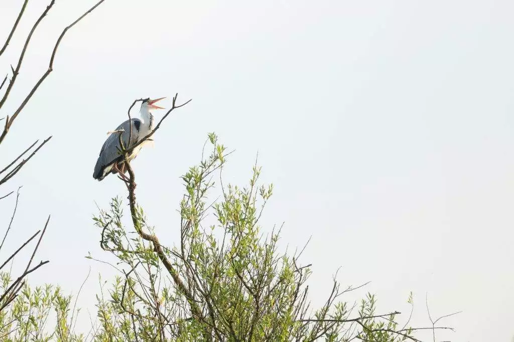 Verderop zat er een blauwe reiger hoog in een boom. Dat zie je niet elke dag. Normaal verwacht je hem aan de waterkant, maar deze zat doodstil tussen de takken. Iets lastiger vast te leggen, maar juist daarom extra leuk.