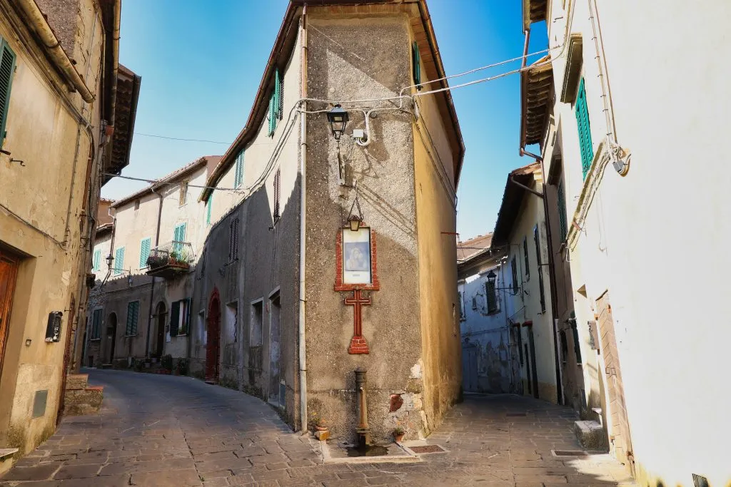 Omschrijving locatie: Monticello Amiata is een schilderachtig bergdorpje in Toscane, gelegen op de flanken van de Monte Amiata. Het dorp ademt historie en rust, met smalle geplaveide steegjes die kronkelen langs eeuwenoude stenen huizen, sierlijke balkonnetjes en verweerde houten deuren. In het hart van het dorp staat een charmante kerk, eenvoudig maar indrukwekkend, waar de lokale gemeenschap samenkomt. Het kleine plein ervoor is een ontmoetingsplek voor dorpsbewoners en bezoekers, en biedt een prachtig uitzicht over de omliggende heuvels. Een wandeling door Monticello Amiata voelt als een stap terug in de tijd – elke hoek, elke steeg en elke gevel vertelt zijn eigen verhaal