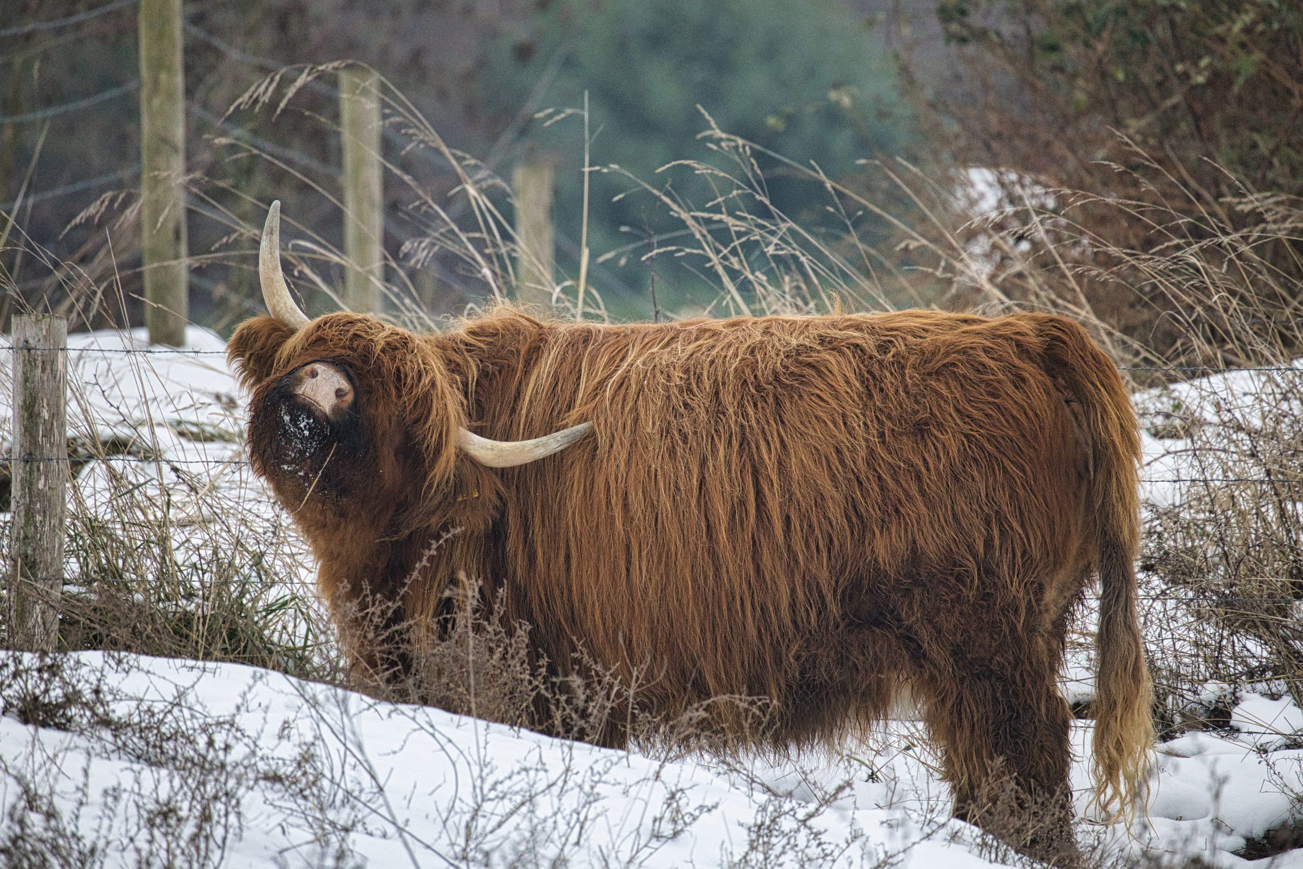 Ik trok er vandaag onverwacht op uit met Ron. Hij kende nog een locatie die de moeite waard zou zijn – en dat bleek een understatement. De omstandigheden waren ideaal: het winterweer hield zich koest en het landschap lag er strak en helder bij. Daardoor konden we deze indrukwekkende Schotse Hooglanders perfect vastleggen. Een topmoment, precies op het juiste tijdstip.